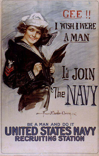 The recruitment posters were the best, though — and they've aged so well, too! I mean, what self-respecting young man of any era could resist the call to "man the guns" and join the Navy? A straight man, you say? Psha!
