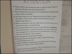 Our building is gradually emptying out as the end of July draws nearer, and the protective padding on the designated elevator which used to only appear on the first weekend of every month is now a permanent fixture. There's always at least one moving van idling out in front of the building and on weekends the loading bay out back is the most desirable parking space on the block. I think everyone has silently resolved to ignore the once strictly enforced "9-to-5 and only with permission" rule that governed the moving of all furniture in or out of the building.