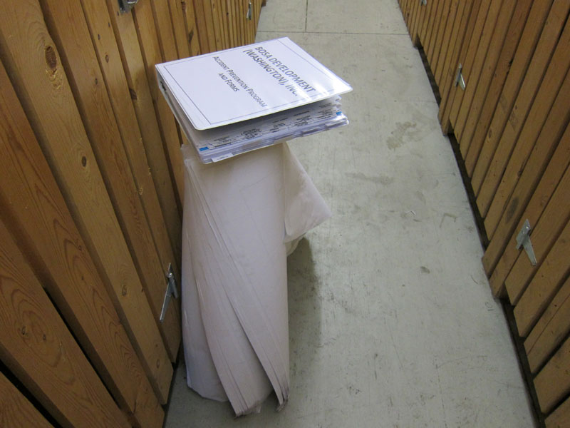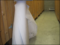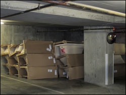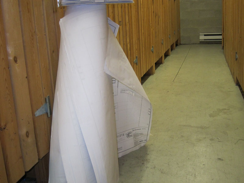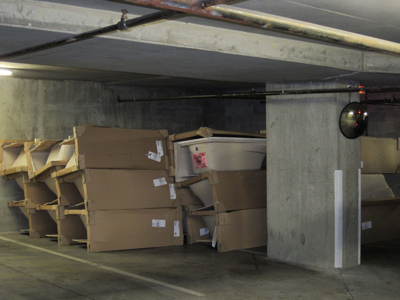 The new building owners have made themselves visible in small ways, from the occasional contractor spotted in the elevator smiling indulgently but avoiding eye contact with the residents, to the flotilla of bathtubs stacked on P5 to the giant roll of architectural drawings left outside the storage lockers (which I had to slide out of the way in order to enter mine!).
