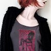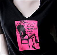 Last week I said I would post some pictures of the t-shirts I've been printing, and here I am doing just that. (I'm as surprised as you.) These are based on the drawings I post every month from Sketchy's, with color added after the fact. And I've been playing with gradients in Photoshop; downloading them by the thousands, then trying one after another after another until my index finger gets tired of pressing the right arrow button, and then (obviously) printing and ironing them onto every t-shirt I can find in my closet. Too much fun.
