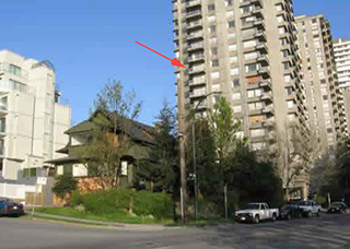 Ah yes, this house. According to the Vancouver Heritage Society, the "Allan" house was built in 1909 at 1460 Bute Street in the West End, where houses of it's ilk and era once proliferated. For the last two decades, though, it was the only one left standing on Bute Street, while all around it highrise apartment buildings towered and mid-rise condominiums sprouted up as lots were vacated, expanding the footprint of the old structure to take advantage of the maximum density allowable. Our old apartment looked out over this house and the backyard which was always piled with scrap wood, lumber and tools. (You can see our balcony underneath the red arrow on the left.)
