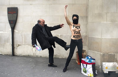 Femen activist protesting against Islamists in front of the Great Mosque of Paris. (Fred Dufour/AFP/Getty Images)