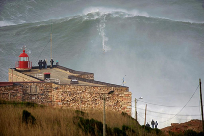 Garrett McNamara attempts to break the Guinness World Record for largest wave ever surfed on in Nazare, Portugal.