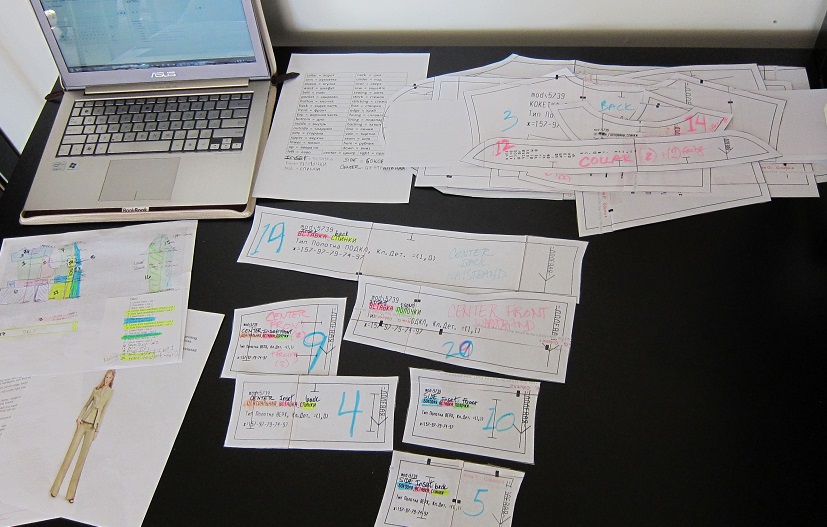 But of course, I couldn't select any of the text because the pdf was completely Information Rights Mangled. In fact, I couldn't even take a screen shot without a copyright error popping up and blocking the screen thanks to the proprietary bullshit PDF viewer I had to install just to open them. So it took me (and Mr. Pink, bless him) two days to cobble together the meanings of each and every pattern piece, including ten nearly-identical strips that comprised the waistband, which were all named a three-word variation on "middle piece" modified by a nearly-identical identifier with an important, distinguishing meaning like upper, lower, inner, right, left, back or front.