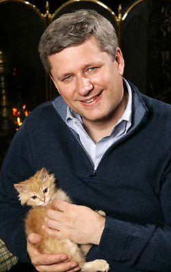(Happily, since the recent election, I'll never have to search for this again, or send it to everyone I know outside of Canada to demonstrate what a creepy lizard-eyed troll he is. Oh, I know... sooner or later we'll be disillusioned by our cool, cute new prime minister and we'll be in the same boat as our neighbors to the south who elected a cool, pot-smoking senator from Hawaii who could smooth-talk circles around the competition only to find that he was spying on the world and droning more civilians in the Middle East than the previous president could have possibly done because he can't count past eleventy. Okay, so maybe it won't be that bad... I'm pretty sure Canada doesn't actually have any drones, but we're sure to be disappointed in Trudeau over something... Until then, 'scuse us while we revel.)