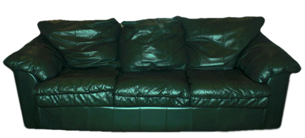 Green vinyl sofa/loveseat set, some Seattle furniture liquidators, 1995-1998