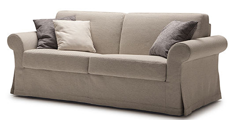 Monica's sofa bed was a formal, solid, overstuffed Clydesdale workhorse of a thing—a grown-up piece of furniture to its very core. It was clearly designed not to clash with any other furniture you might have, now or in the future, and it was capable of seating one, two or three people at equal and appropriate distances in an equally moderate level of comfort. It was the kind of sofa that can never really be "broken in" and will never cause your guest to sink in and lose track of time, overstaying their welcome. If you were to fall asleep on it, you would awaken just in time to relocate to more appropriate sleeping quarters, without forgetting to brush and floss along the way. Keys, change and small accessories were never lost between the cushions, which employed the same ingenious techniques of the builders of the Pyramids of Giza, between which modern engineers are unable to insert so much as a butter knife. The sofa bed was not only neutral in color, but at the molecular level, occupying a previously undiscovered spot on the periodic table which, although long theorized had never before been observed under laboratory conditions. Wine stains were miraculously repelled from its surface, which neutralized permeable contaminants that came into contact with it.