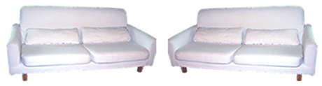 When we met Monica, she had just rented a chic "Junior 1 bedroom" condo in a hot new downtown highrise. The apartments were almost patronizingly small, and in the middle of unloading the moving truck, had realized she would need to rent a storage locker for the rest of her stuff. She packed away a dining room set and solid oak sleigh bed, and commissioned her ex-boyfriend to build a custom-fitted bunk in the "studio" alcove—basically a mattress platform on stilts—with ostensible space underneath for a home office (although she never did trust his carpentry skills enough to set up her desk. She knew that every minute she sat there, she would just be waiting for the thing to come crashing down around her head). The one thing that didn't fit in her storage locker but that she couldn't bear to part with was a sofa bed—tastefully traditional, neutrally colored, inoffensive-in-every-possible-way—and within days of meeting us, she pitched the idea of our borrowing it, more as a favor to her than to us.