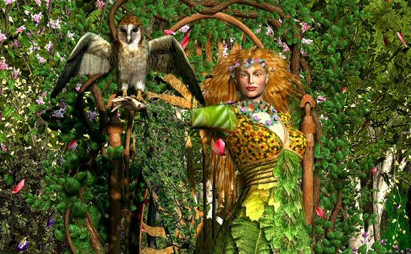 We quickly identified a character from Welsh mythology around which we could build an appropriate costume—Blodeuwedd, or "flower face," a Welsh goddess of spring associated with flowers and owls. Historically, her story was a poignant, cautionary morality tale but alongside those, you can now find numerous treatises reclaiming and reframing her narrative for a modern, feminist era. Seen in this light, she's almost a kind of Lilith character; a vilified symbol of female inconstancy—suggesting that the same could be said of nature itself (you know, these things we try our best to tame and how they inevitably betray us when we turn our backs, despite how good we treat them, or something... "we" being, of course, men). So we added an epilogue of sorts, bringing the "flora to fauna" story full circle.