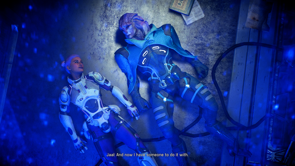 There's no one thing I can point to about the new crew that explains why they left most players cold, even with the controversial expansion of "romance" options to include every species and both genders whether they chose to play as Scott or Sara Ryder. I've got no beef with the voice talent, but most of the characters are just so badly written, there's not much they could do with the material. Some (ahem, Cora and Liam) are embarrassingly bad, even as the actors are clearly trying to deliver their uninspiring, occasionally nonsensical dialog with all the required gravitas. Some are better than others, notably Jaal and Drack (or "Old Man Krogan," as I like to call our cantankerous, thousand-year old mentor), but there are definitely no Martin Sheens or Lance Henricksens among them.
